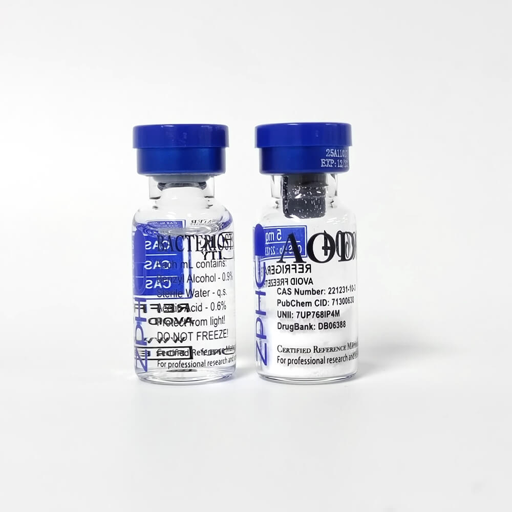 - O kit inclui: 1 frasco de 5 mg de peptídeo AOD 9604 liofilizado + 1 frasco de água bacteriostática para reconstituição.