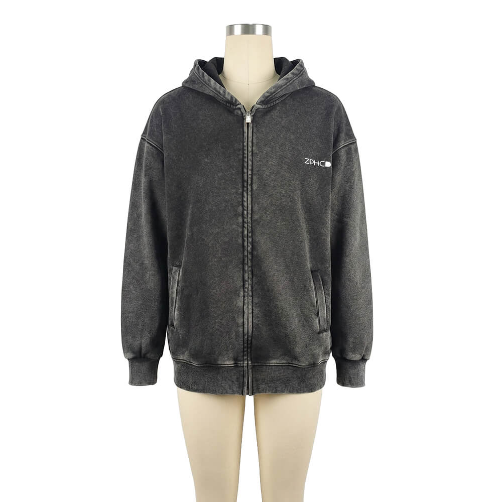 Moletom com capuz e zíper Lifestyle ZPHC — Preto lavado