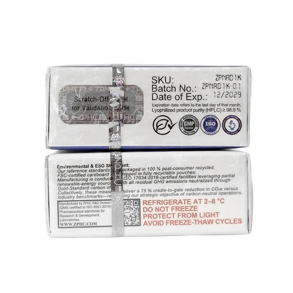 - Aplicações de pesquisa: estudos de metabolismo energético celular, modelos de função mitocondrial, vias de longevidade, pesquisa de restauração de NAD+.